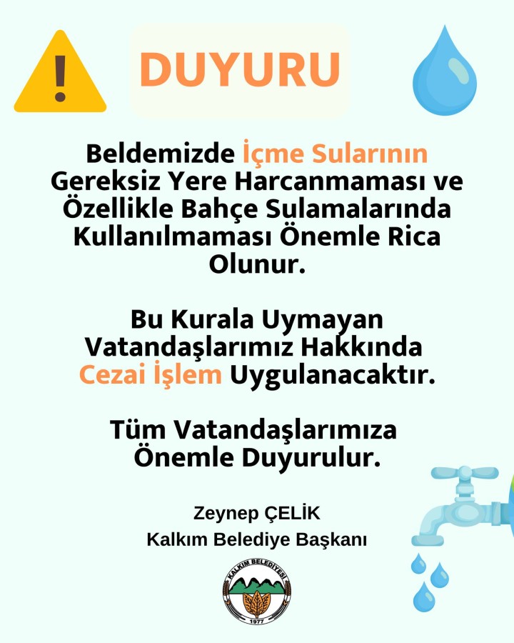 İçme Sularının Gereksiz Kullanımına İlişkin Duyuru