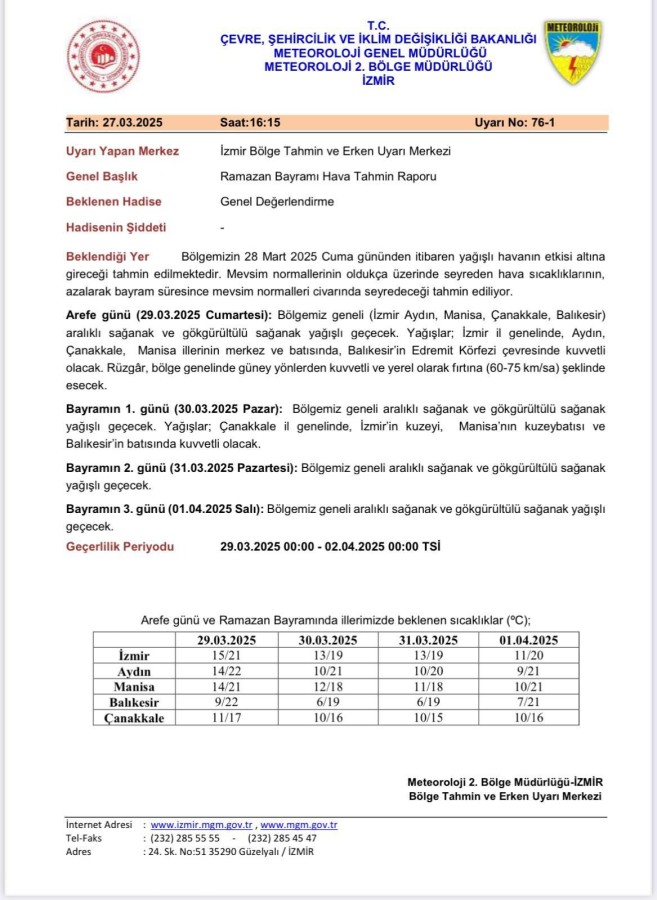 Ramazan Bayramı Tatilinde Hava Durumu